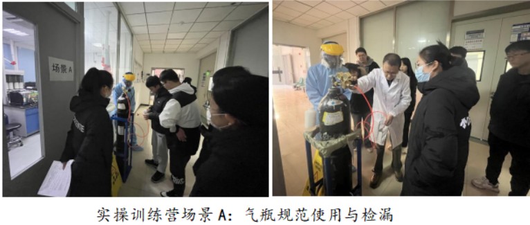 针对以往安全教育中场景泛化、大班教学、实操不足等问题,本次实操训练营创新采用“专人指导、小班循环、自主选时”的培训模式,于12月3日至10日设置五个预约时段,师生可通过线上小程序灵活报名。训练营聚焦“气瓶规范使用与检漏”“呼吸防护装备与防护服选择穿戴”“心肺复苏与 AED 使用”三大核心场景,开展手把手、面对面的实操教学,确保每位参与者都能亲自动手、熟练掌握关键技能。完成全部场景操作的学员可获得特制“通关徽章”并认定相应学时,极大激发了师生参与热情。“理论学习是基础,亲手实操才能真正掌握技能,这样的活动实用性极强,收获满满。”参训学生代表徐浩然说道。训练营指导教师王婷婷也表示,将外出研学成果与学校实验室实际结合,细化培训脚本并指导学生实践,自身业务能力也得到了显著提升。