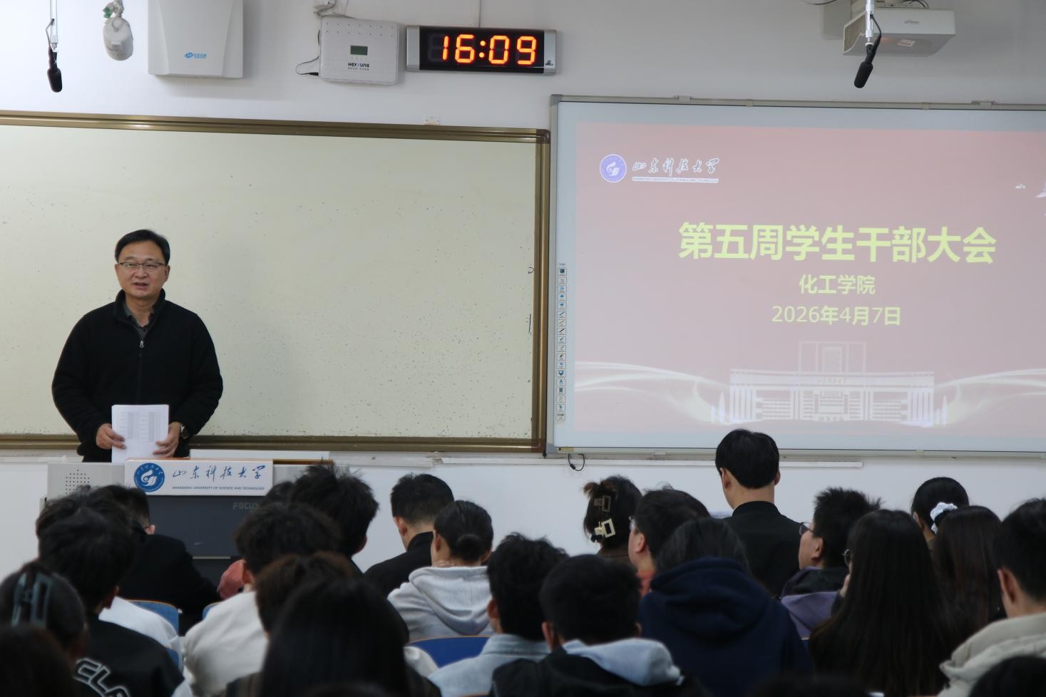针对学生干部队伍建设,陈永磊指出,学生干部要自觉克服“精致利己”倾向,强化实干与奉献精神。他要求学生干部在班级建设中积极推动班级自治,以身作则,不断提升执行力、组织力和协调力,团结带领广大同学共同营造积极向上的校园文化氛围。(报道:李瑜坤)