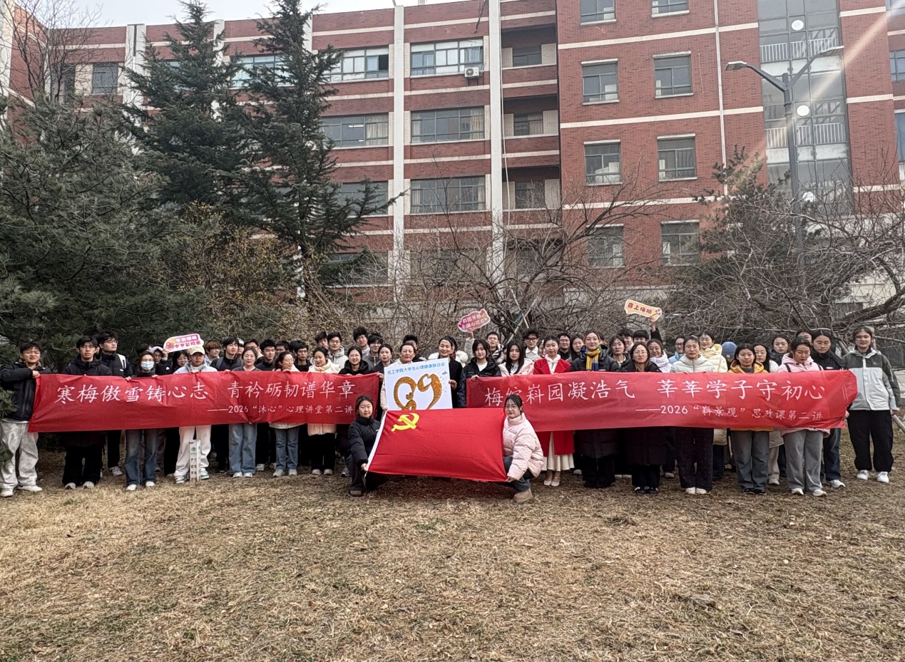 党支部、心理健康联合会部分学生代表参与课程。在暗香浮动的园中,以梅为媒,效古人雅集之风,疏影横斜,畅叙幽情,师生携手上了一堂融合自然美育、诗词文化、红色传承与心理育人的沉浸式思政课。